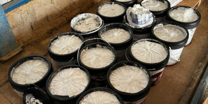 PF deflagra Operação SPACKLE e apreende mais de 60 kg de cocaína escondidos em baldes de massa corrida